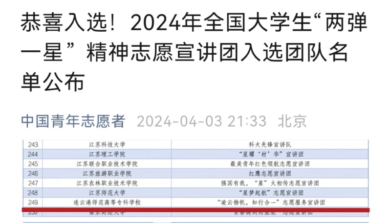 近期,團(tuán)中央青年志愿者行動指導(dǎo)中心聯(lián)合有關(guān)單位面向全國高校,組織開展了2024年全國大學(xué)生志愿宣講團(tuán)和志愿服務(wù)團(tuán)的遴選工作。我校“知行社”積極申報并成功入選2024年全國大學(xué)生延安精神、“兩彈一星”精神、“中國歷代繪畫大系”志愿宣講團(tuán)以及2024年全國大學(xué)生“鄉(xiāng)村振興”、關(guān)愛行動“七彩假期”志愿服務(wù)團(tuán)。