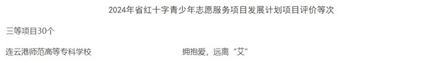 近日,我校文學(xué)院“思源致遠(yuǎn),文韻港城”社會(huì)實(shí)踐隊(duì)成功入選2024 年“三下鄉(xiāng)”暑期社會(huì)實(shí)踐全國(guó)重點(diǎn)項(xiàng)目名單,大學(xué)生心理健康協(xié)會(huì)、青春健康同伴社聯(lián)合開展的“擁抱愛,遠(yuǎn)離‘艾’”公益項(xiàng)目被評(píng)為2024年江蘇省紅十字青少年志愿服務(wù)項(xiàng)目發(fā)展計(jì)劃項(xiàng)目匯報(bào)評(píng)價(jià)活動(dòng)三等獎(jiǎng)。