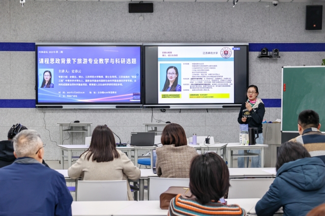 近日,我校舉辦“問漁講壇”2025年系列學(xué)術(shù)講座——“課程思政背景下旅游專業(yè)教學(xué)與科研選題”。講座邀請(qǐng)江蘇師范大學(xué)教授、碩士研究生導(dǎo)師史春云主講,科技產(chǎn)業(yè)處、相關(guān)專業(yè)教師代表參加活動(dòng)。