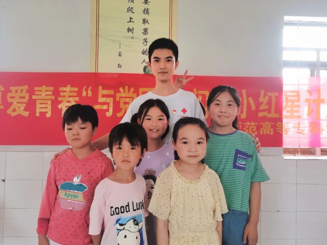 為了更好的服務人民,同時將理論知識運用于實踐中,鍛煉自己、豐富經(jīng)驗。在暑期,他積極組織開展博愛青春支教活動。支教不僅僅是關心留守兒童,愛心奉獻,更是大學生責任感、社會感的一次大檢驗。課堂上的他,每每看到這么一群,父母常年在外打工,跟隨老人留守在家的孩子們,那單純、可愛、渴求知識的眼神,他便想起從小媽媽常對他說的那句話:要好好學習,將來回報父母,回報社會。他忘記了那是一個酷暑難耐的夏天,忘記了支教前一次次演課的辛苦,他聲情并茂地向孩子們講授著傳統(tǒng)文化知識。雖然一次次支教給孩子們帶來的知識是有限的,但是對留守兒童的陪伴與學習興趣的培養(yǎng),有著極大的意義。課余時間,他將枯燥單調(diào)的古詩與現(xiàn)代歌曲結合起來,引起孩子們的興趣,有的小朋友在臺下輕輕拍起手來,有的跟著節(jié)奏小聲學唱起來,教室慢慢響起了優(yōu)美的歌聲,通過歌曲幫助孩子們和傳統(tǒng)文化建立一種親切感,孩子們在娛樂的同時,感受到傳統(tǒng)文化思維和魅力。