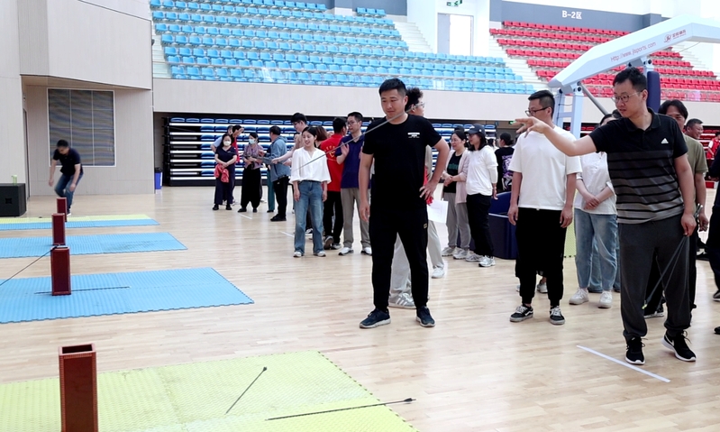 本次趣味運動會分為教師組與學生組,涵蓋了托球跑(乒乓球)、投壺、同心鼓、運轉(zhuǎn)乾坤、旱地龍舟等多個趣味運動項目,比賽項目內(nèi)容豐富、趣味十足。師生們熱情高漲、團結(jié)拼搏,以擰成一股繩的勁頭奮勇爭先,全場歡呼聲、加油聲此起彼伏,掀起了運動會的陣陣高潮,大家都盡情享受著趣味運動和汗水揮灑帶來的快樂,整個運動館內(nèi)都洋溢著團結(jié)、拼搏、健康歡樂的體育氛圍。