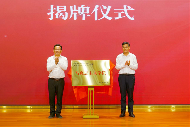 5月29日下午,市委宣傳部與我校舉行共建馬克思主義學(xué)院簽約揭牌儀式。市委常委、宣傳部部長(zhǎng)胡竹,校黨委書記楊浩共同為部校共建馬克思主義學(xué)院揭牌。