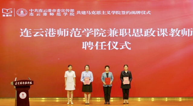 簽約揭牌儀式上,我校聘任連云港師專三附小校長(zhǎng)陳紅,市革命紀(jì)念館副館長(zhǎng)郝芳,全國(guó)人大代表、海州區(qū)海連社區(qū)黨委書記李肖娜為兼職思政課教師。共建儀式后,舉行“連理軒”理論名嘴進(jìn)校園暨“大思政課”主題微宣講活動(dòng),8名“連理軒”理論宣講人才庫(kù)成員聚焦弘揚(yáng)社會(huì)主義核心價(jià)值觀和革命文化以及港城學(xué)習(xí)貫徹新思想的生動(dòng)實(shí)踐等主題,為現(xiàn)場(chǎng)200余位青年學(xué)子送上一堂精彩紛呈的思政微課。