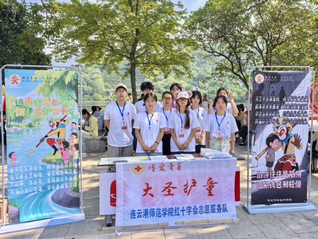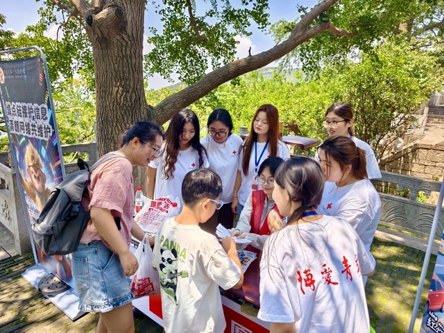 外語與商務(wù)學(xué)院(國際教育學(xué)院)“大圣護(hù)童”志愿團(tuán)隊(duì)在花果山景區(qū)設(shè)立“兒童安全教育驛站”,圍繞防溺水、消防避險(xiǎn)、用電安全等六大主題,通過宣傳問答、情景模擬、急救法演示等形式開展安全教育。團(tuán)隊(duì)創(chuàng)新打造“西游文化IP+兒童安全教育+暑期文旅服務(wù)”模式,設(shè)計(jì)防溺水貼士、安全主題團(tuán)扇、“大圣護(hù)童安全徽章”等文創(chuàng)產(chǎn)品,吸引兒童在游戲互動(dòng)中學(xué)習(xí)安全知識(shí)。團(tuán)隊(duì)面向親子游客開展問卷調(diào)查,助力地方文旅研學(xué)服務(wù)升級(jí)。