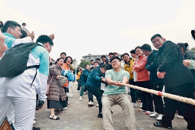開幕式上,航空模型盤旋升空、機(jī)器人精準(zhǔn)起舞,科技元素驚艷全場;孫悟空經(jīng)典形象靈動登場,與太極扇、舞龍舞獅的傳統(tǒng)韻味相映成趣;啦啦操的活力節(jié)拍與民族舞的柔美身姿交織,盡顯多元文化魅力。各黨總支、各學(xué)院的師生們進(jìn)行了廣播體操、健身氣功比賽。